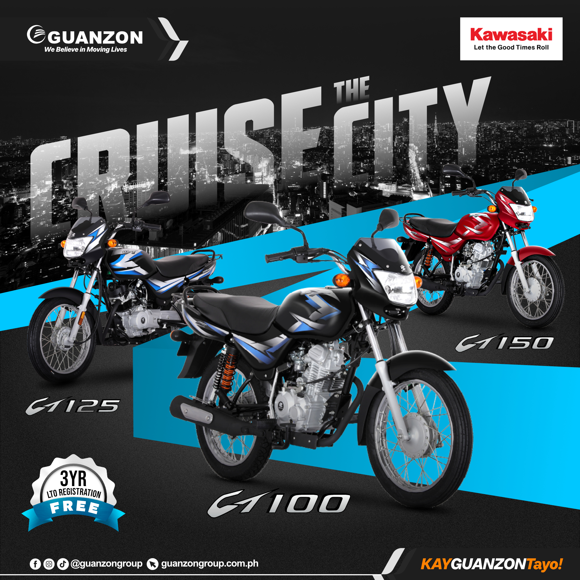 With more than two hundred branches all over the Philippines, Guanzon Motorcycle Group ensures the most modern and excellent-quality motorcycles. The dream stemmed from selling Kalesa (horse cart) spare parts to selling bicycles, eventually becoming one of the largest motorcycle dealers in the country today. In partnership with the world’s premier motorcycles, we carry the brands – Yamaha, Honda, Kawasaki, and Suzuki. Guanzon Motorcycle Group also showcases a high-performing electronic a variety of bicycles produced by Hatasu.