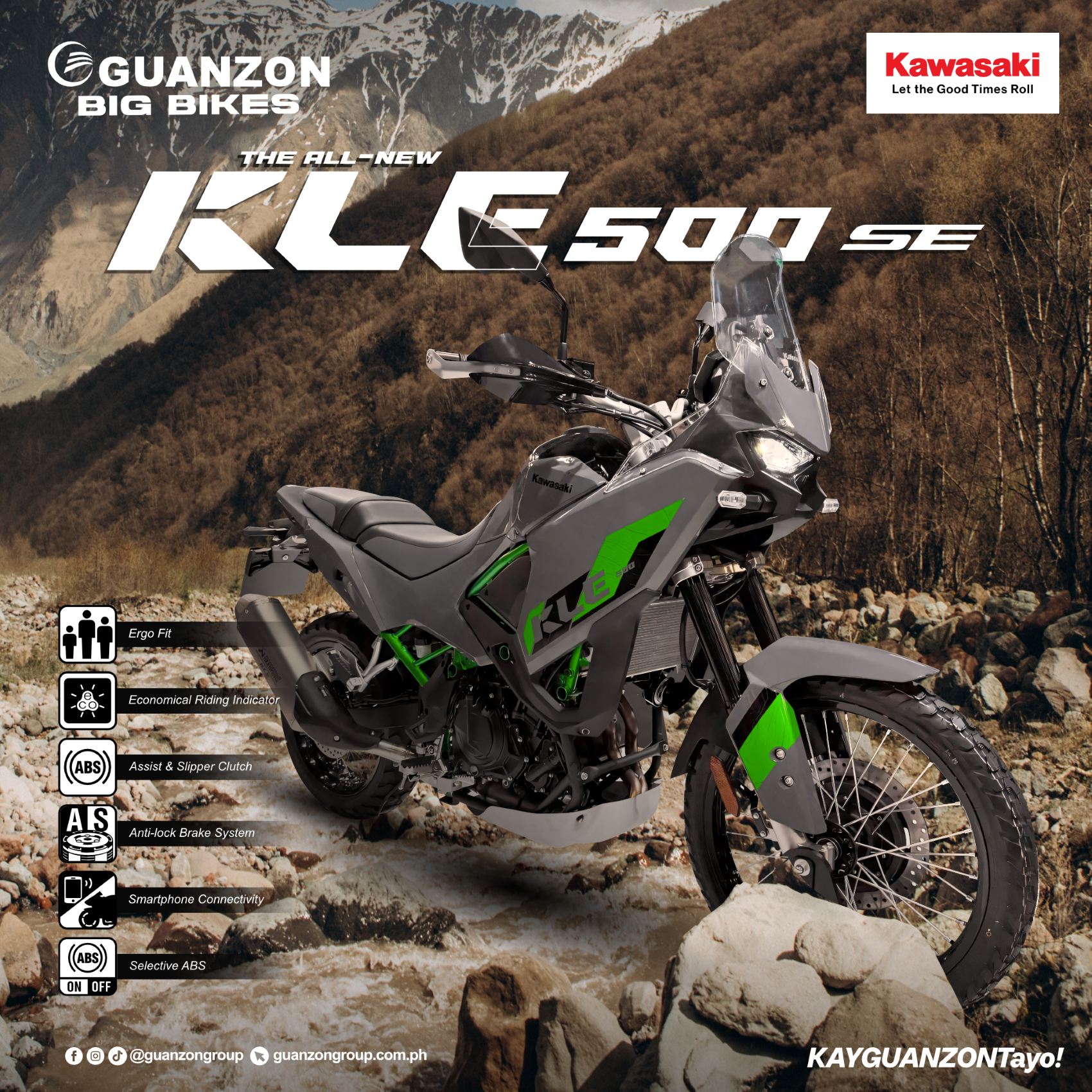 Meet the 𝗔𝗹𝗹-𝗡𝗲𝘄 𝗞𝗮𝘄𝗮𝘀𝗮𝗸𝗶 𝗞𝗟𝗘 𝟱𝟬𝟬 𝗦𝗘! This adventure motorcycle is designed to help you discover new horizons. Purposefully rally-designed to showcase its functional beauty that delivers versatility on or off the pavement!